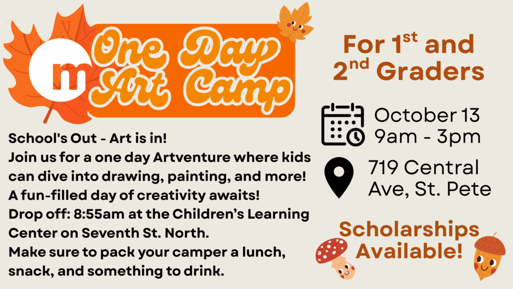 *Please Note: October 13th Art Camp is only available to 1st-2nd Graders. We do not allow Kindergarteners or 3rd-5th Graders. There is no CLAY CAMP.