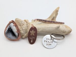Ashley Wix is a self-taught silversmith from Springfield, Tennessee, now based in Gulfport, Florida. She combines her background as a dental technician – where she honed a passion for precision and metal – with her knowledge of silversmithing, to create intricate, handcrafted jewelry. Specializing in sterling silver, her work often incorporates ethically sourced stones and bones, drawing connection between her art and the natural world. She is also passionate about sharing her foundational skills with aspiring silversmiths.Â