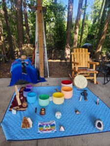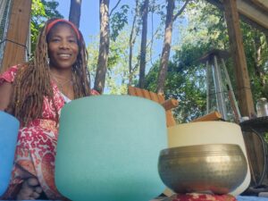 As a sound bowl practitioner, meditation leader, and lecturer, Malinda uses crystal singing bowls, drums, and other instruments to facilitate healing on a physiological level. She explains that sound healing works by vibrating the body’s fascia, the connective tissue that links all organs and systems. These vibrations travel through the body at a cellular level, similar to acupuncture or acupressure, helping to release energetic blockages. The sound bowls are tuned to different energy centers, or chakras, allowing vibrations to move through the body, unclog blocked energy, and support healing on mental, emotional, and physical levels.
