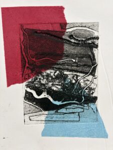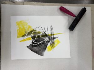 Monoprinting is the process of creating a one-of a kind image. Artist can use, found objects, wood blocks, and many other items to make an adventurous, entirely unique piece.